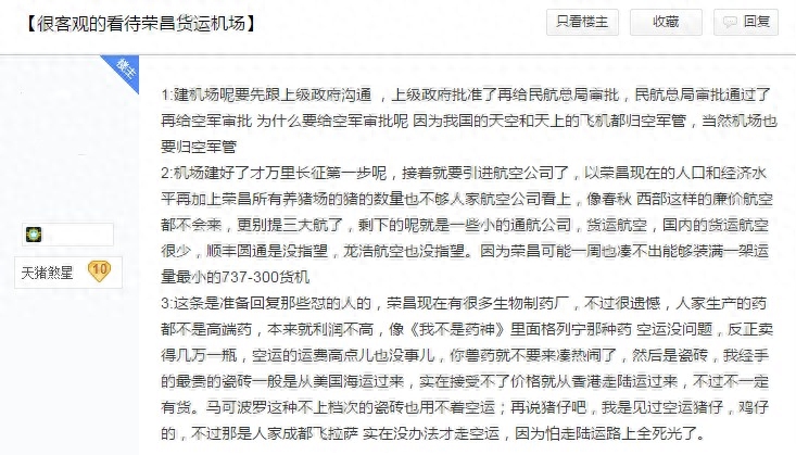 近日,有网友在荣昌贴吧发帖谈了自己的看法,一时间荣昌人纷纷表示自己的看法,更是引起了大量网友的跟帖回复。网友称:荣昌建货运机场条件不允许,甚至还有不少网友表示,机场项目暂时未拿下,荣昌房价倒是涨了不少。当然也有不少网友全力支持货运机场的建设,能积极带动荣昌经济的大力发展。
