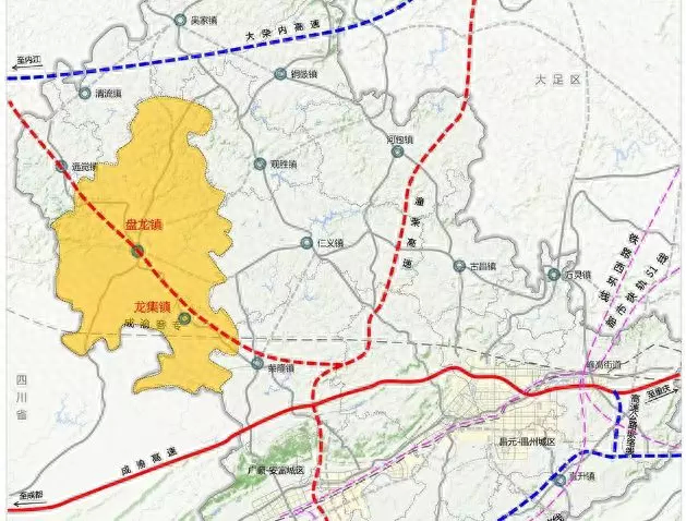 荣昌具备完善的“水、陆、铁、空”立体交通配套,空地对接运输通道丰富,可以作为未来国家西部货运航空枢纽的配套交通体系。区内有成渝公路(国道)、成渝高速、渝蓉高速,以及在建的南大泸高速、内大高速。同时,南大泸高速还与成资渝高速在潼南交汇,而后者是天府机场至江北机场最便捷的高速公路。