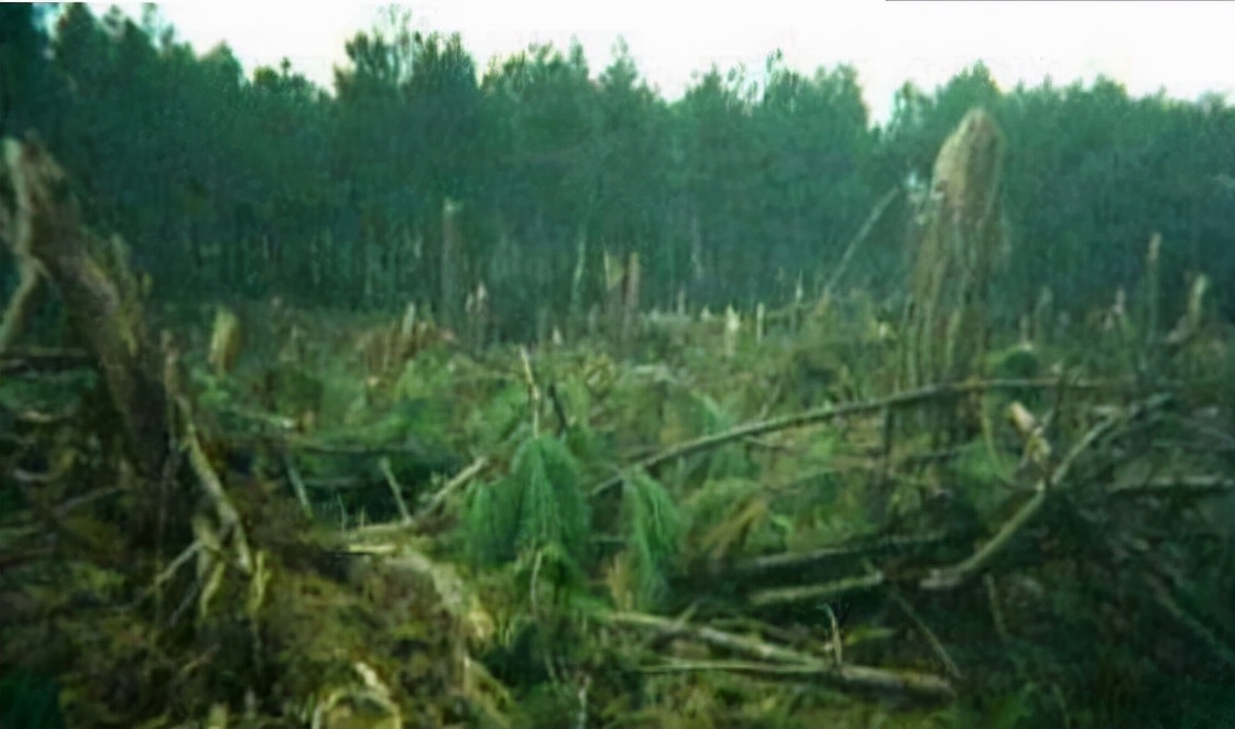 在几分钟的时间内,都溪林场近400多亩的松林,直接被折断,据附近的目击者说,他们看了一个不明飞行物,呼啸而过,直接毁了这片松林。