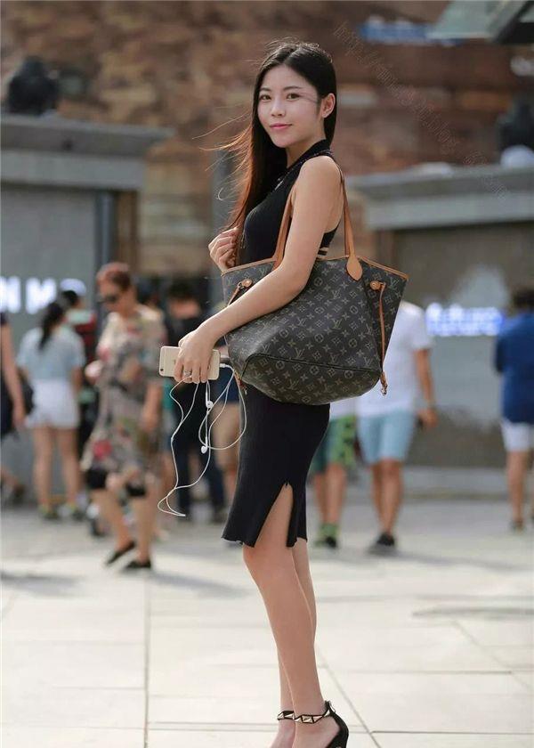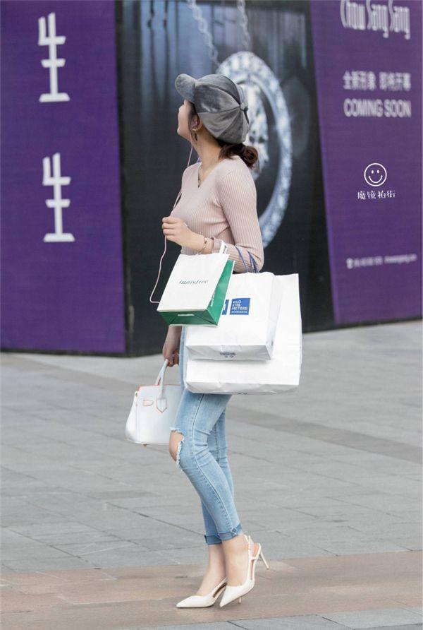 街拍:满载而归的小姐姐,这身材有点别致啊!