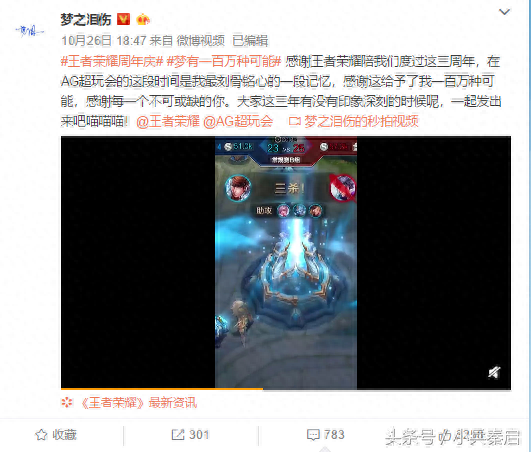 前几日,是王者荣耀三周年的庆典,梦泪也是有感而发,发布了让自己成名的经典战役。配合着激情的音乐,梦泪和网友一起重温了那激动人心的十秒钟。