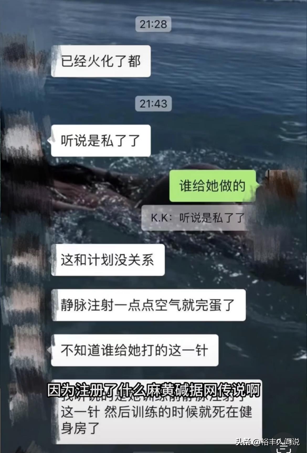 “我听说的,是她训练前静脉注射了一针,然后训练的时候就死在了健身房。”