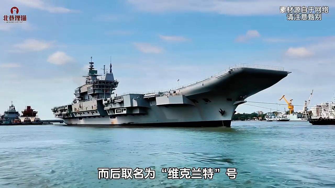 没错,这是一艘有着建造海试达14年,先后三次下水的印度国产航母维克兰特号。如果从2005年切割第一块钢板算起,该艘航母建造海试用了整整17年时间。