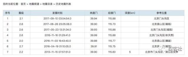这是中国地震局官网所查询的2013年以来北京所发生地震的一些情况。