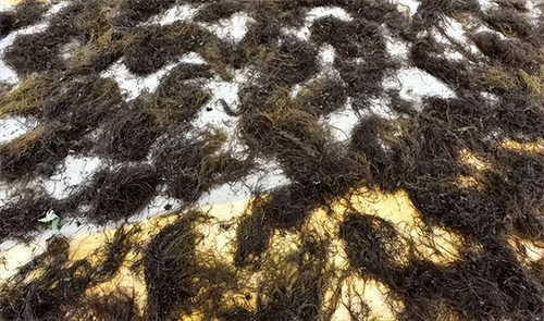 但这个东西不说常见吧,也并没有那么少,它的长相就和头发类似,黑黑的非常细。