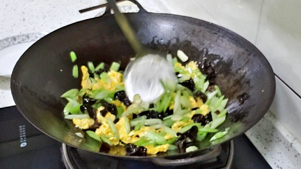 特色芹菜木耳炒鸡蛋的主要操作方法和步骤: