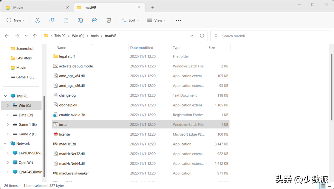 解压以后尽量将这个两个工具存放在纯英文路径下,LAV Filter 依次以管理员运行的三个 install_audio/install_splitter/install_video,madVR 安装时则需要以管理员方式运行 Install.bat 进行安装。在安装完毕以后,这两个文件夹也不可以删除,因为安装时不会移动这些文件到特定目录中。接下来就需要进入 Potplay 内设置了。