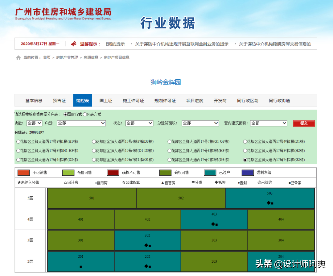 ▲ 广州市某楼盘网签等公示情况。