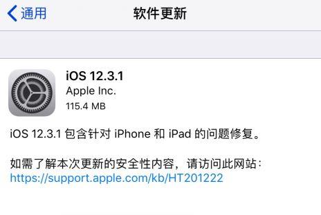 在2019年5月25日凌晨时段,苹果公司正式推送了iOS12.3.1正式版系统,本次版本没有内测版,直接发布正式版,你可以在设置-通用-软件更新(升级),让人感到特别意外,正以为要发布iOS12.4正式版系统,万万没想到出现了iOS12.3.1正式版系统,总让人意想不到。