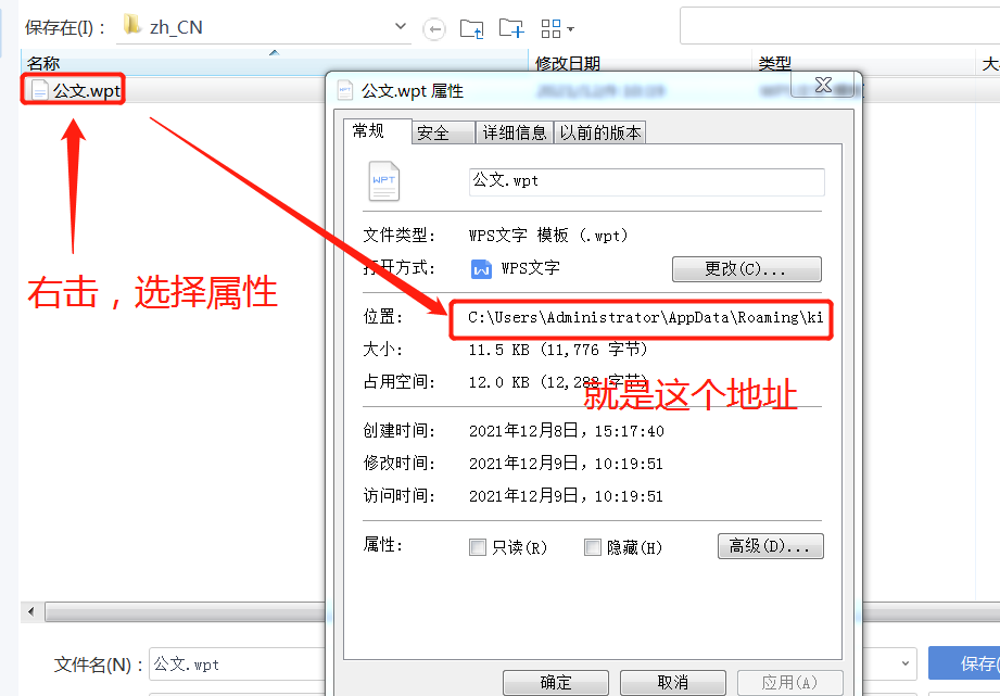 步骤2:打开刚刚保存的模板所在的文件夹(位置:C:\Users\Administrator\AppData\Roaming\kingsoft\office6\templates\wps\zh_CN)。其中,找到此文件夹位置的方法是: