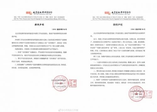 而律师声明主要针对“合约情侣”一事。声明中指出,“合约情侣”纯属造谣,眼里谴责不是信息发布者恶意捏造、散播不是信息的行为,不是信息一涉嫌侵犯二人的名誉权,特发布严正声明警告不是信息发布者,若怠于处理,将面临法律追责。