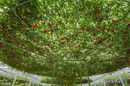 在农业观光园中,经常可以看到长得像树一样的番茄,俗称番茄树。据说如果这样的番茄树管理得当,一棵番茄一年就能结上万个番茄,甚至更多都没有问题,而且正常情况下能连续生长5年以上。