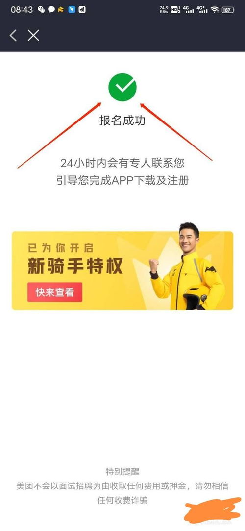 2. 注册成为美团外卖骑手。打开APP后,按照指引填写个人信息,包括姓名、联系方式、身份证号码等。