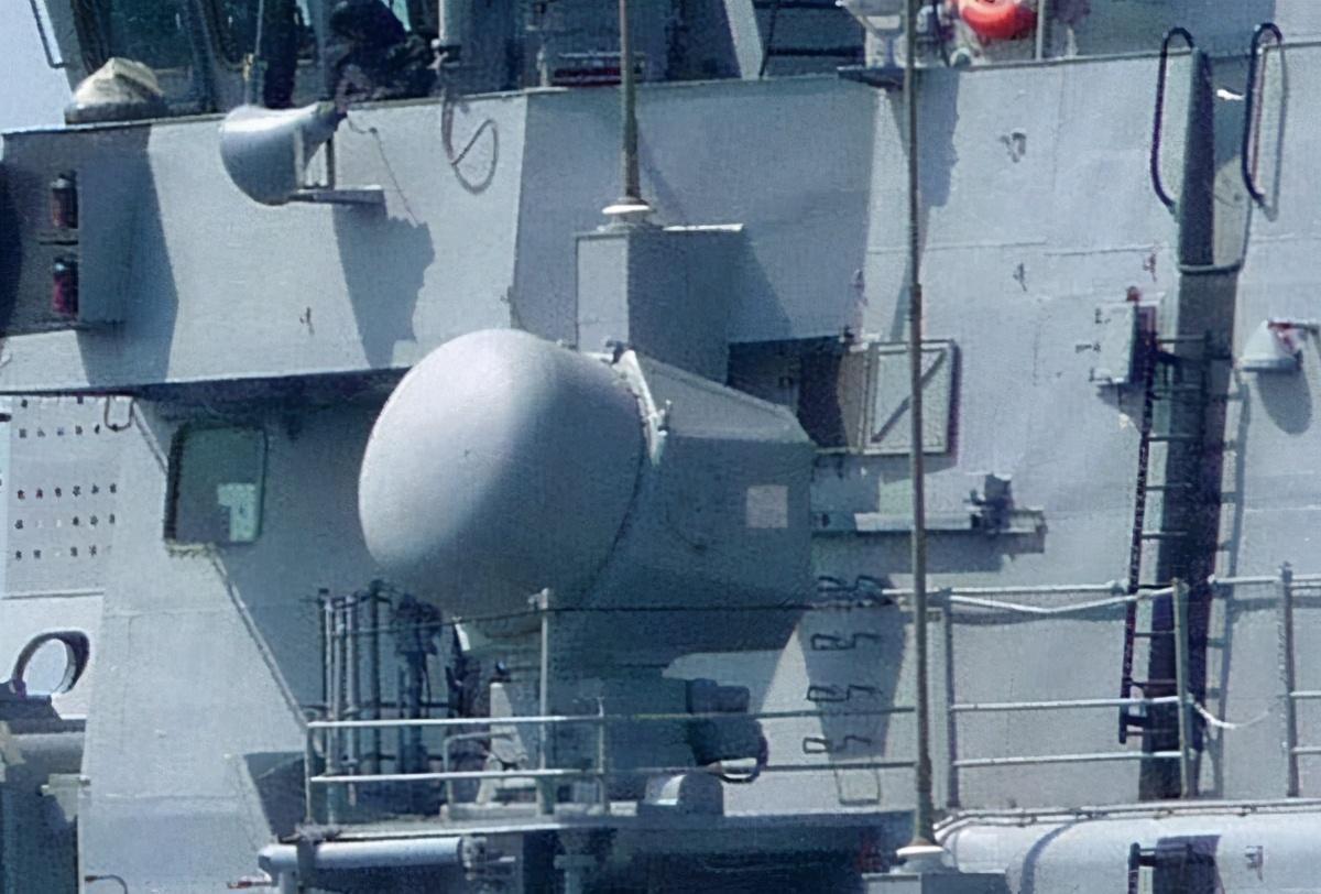 现在054A护卫舰使用的都是“海红旗-16”舰空导弹,是雷达指令+半主动雷达制导的,所以说,此次出现的四个新设备,就是新一代的照射雷达了。然后我们从另一张照片发现,此次也对红旗-16导弹进行了改进,用有源相控阵制导照射雷达替换掉了以前的机械照射雷达,两款雷达相比,前者的损耗显然是更小的,而且灵敏度高,功率大,可以提升制导照射的距离,从而可以为导弹增加了射程,提高了舰空导弹的导弹性能和拦截能力,虽然看着不是什么大改变,但是相比之前的机械照射雷达,有源相控阵导照射雷达可以在短时间内使其形成更高的战斗能力。