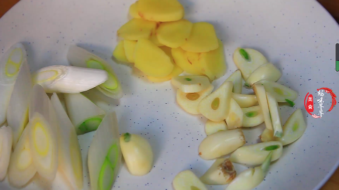第三步,接着将洗净的大葱切段,生姜切成片,大蒜也切成片,提前泡发好的木耳洗净后切片。