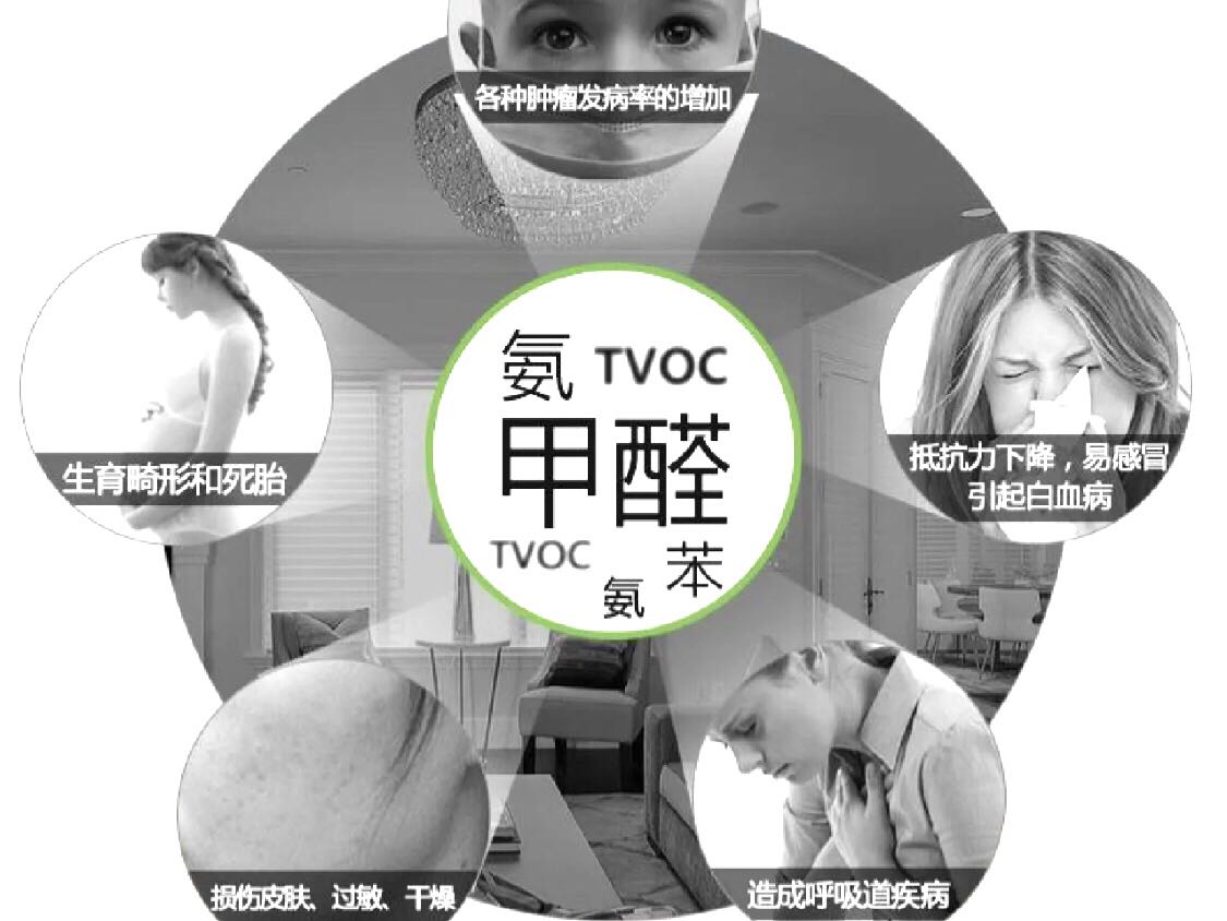 长期的处于甲醛超标的室内会导致免疫力下降、记忆力衰退、精神抑郁等。除此之外,甲醛对免疫力低的人群危害更大,例如老人、儿童、孕妇,长期处于甲醛超标的环境会导致咳嗽、过敏、发力,严重的话会对器官造成损坏、引发白血病、癌症等。并且甲醛会引起新生儿的基因突变,染色体损坏断裂,对婴儿产生非常大的影响。