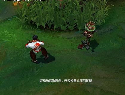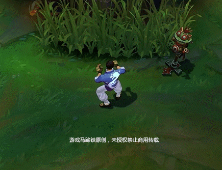 白衣瞎身后的龙原本是红色,使用大招后就会变成金色,闪耀一阵后再回到红色。除此以外盲僧使用任何技能以后他的双手都会泛起旋涡一样的光芒,这个跟盲僧的被动对应。
