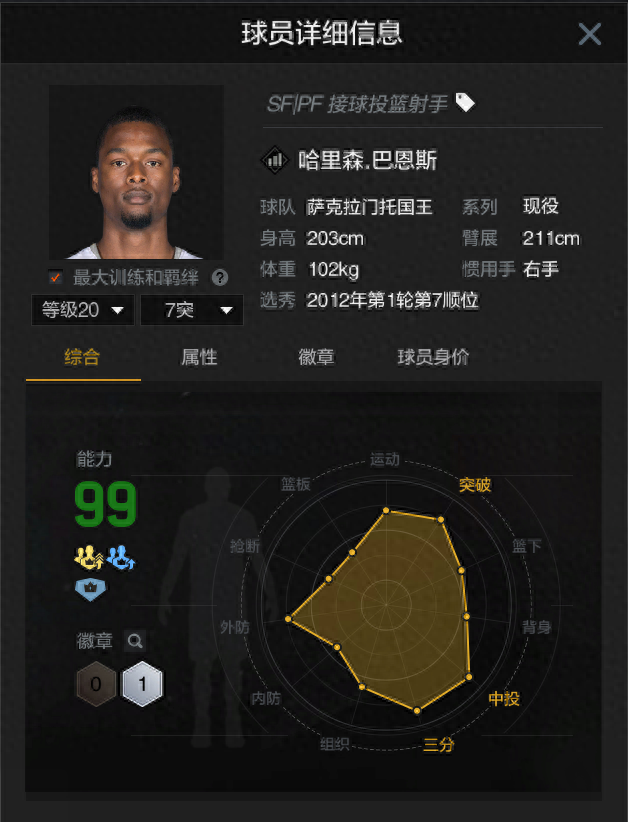 作为现役国王队的当家球星,巴恩斯的各方面能力都很出色