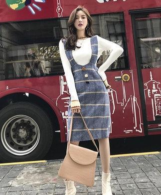 双排扣,款肩带的毛呢裙,也是法式复古风格中必不可少的一件单品。最适合冬天穿,不仅保暖,还显身材。(朵露)