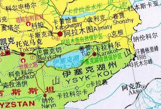 伊赛克湖,位于中亚吉尔吉斯斯坦境内,天山山脉北麓,面积在世界所有高山湖泊中居于第二位,仅次于南美洲的的的喀喀湖;其平均水深278米,最大水深达702米,是世界上深度最大的高山湖泊。
