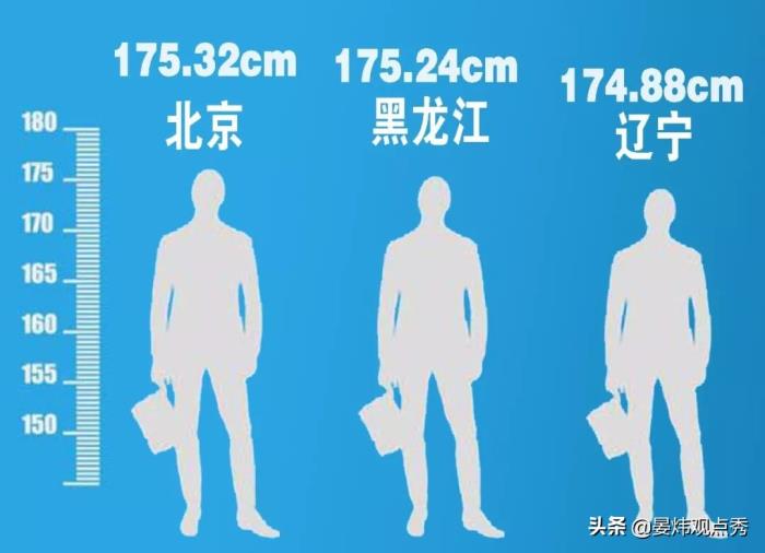 而在中国,男性平均身高位于前三位的省份分别是北京、黑龙江和辽宁,