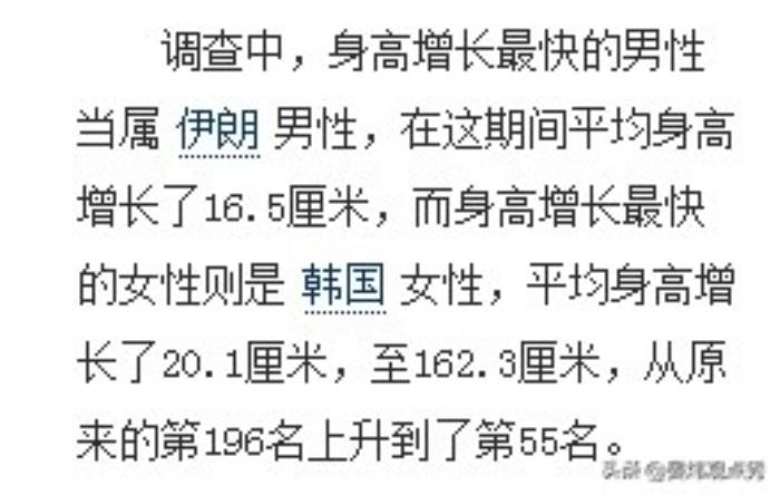 但其实,如果你个子比较矮,倒也不用太烦恼,BBC专家团队曾对各个国家1914-2014年的平均身高做了研究,他们发现,100年以来,许多国家的平均身高增长飞快,伊朗男性平均身高增长了16.5厘米,韩国女性的平均身高则增加了20.2厘米。