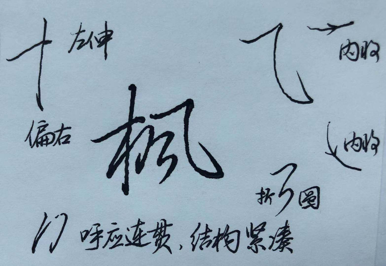 2、竖提与“风”的撇画相呼应,可以使得左右两个部分衔接得更加自然和紧密。当然,这里只是提供一种写法参考。