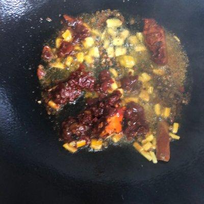 4、将小米辣爆做好香,放入禁忌豆瓣酱,火锅底料,花椒,桂皮,香叶,糖炒做好香