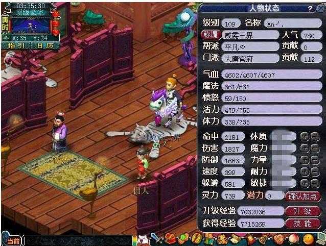 这个是比较流行的加法,还有一个加点方法和4力1耐类似,如果玩家打算长时间停在109的话,就建议这样的加点,4力加点可以保证本身的输出,毕竟大唐是输出职业而不是辅助,和5力的差距后期用装备、宝石等弥补上来,这样不管做任务还是PK生存力都比较有保证。也是比较适合平民的一种玩法。