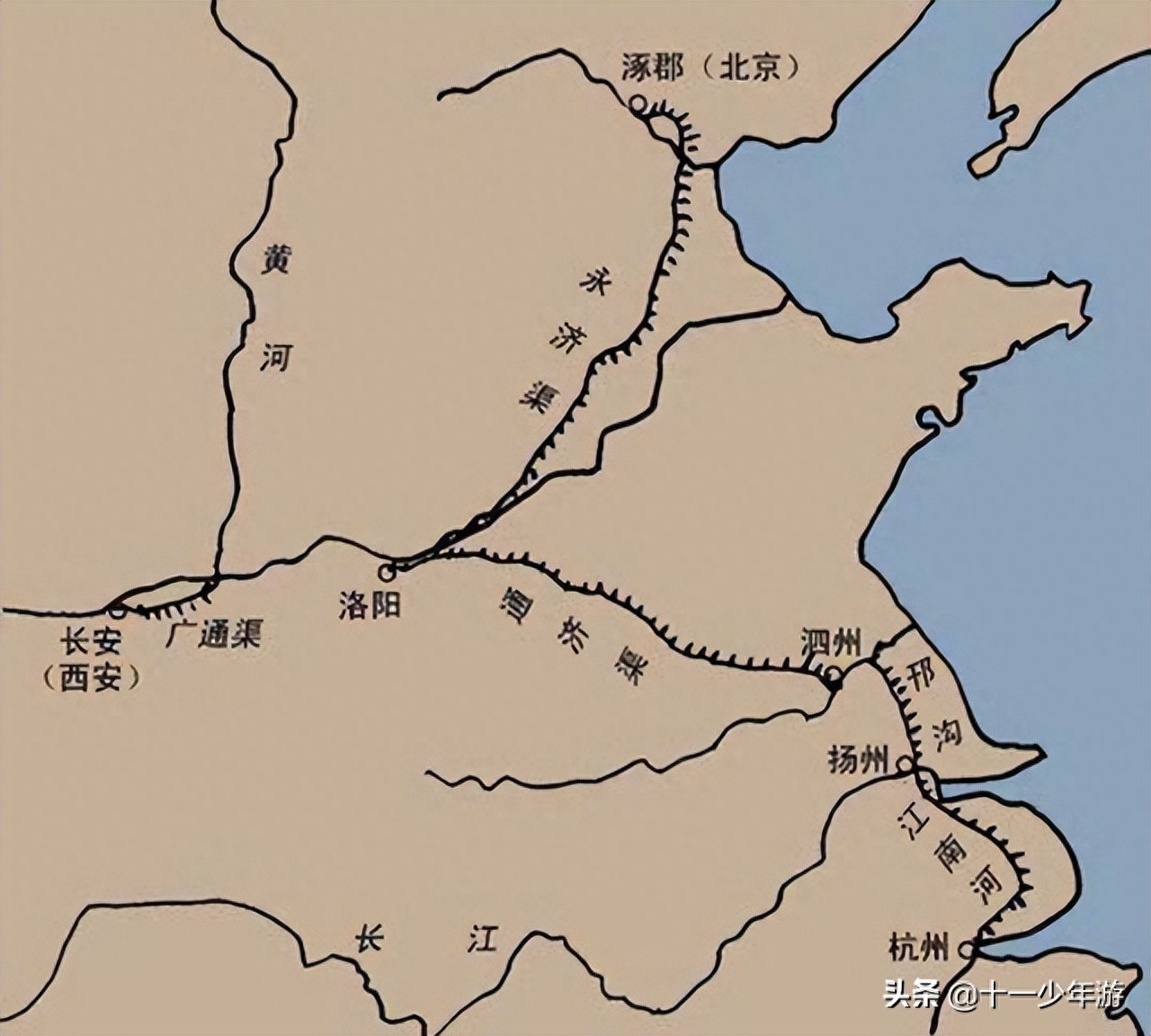 大运河其实有二条。第一条是605年,隋炀帝开凿的隋朝大运河;第二条大运河是元朝时开凿的。