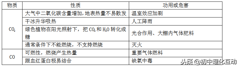 (4)CO2、CO的性质与功用、危害关系