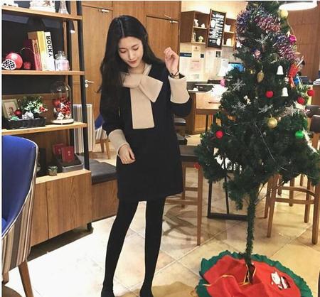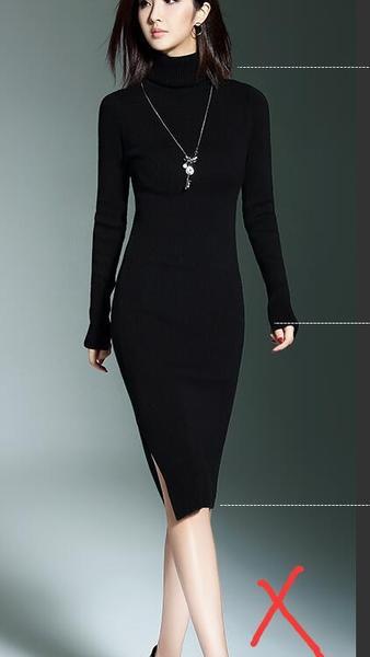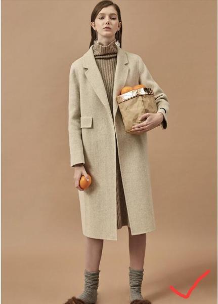 过膝H型大衣配H型打底毛衣裙,可以修饰梨型身材。