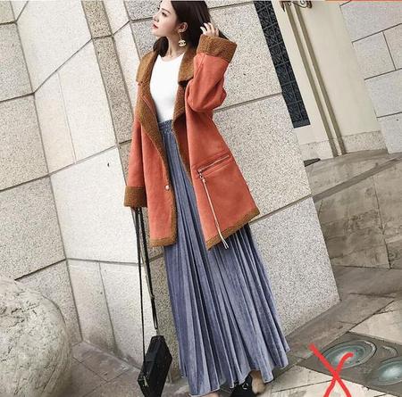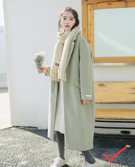 O型的长外套也可以,尽量不要选择A型上衣。
