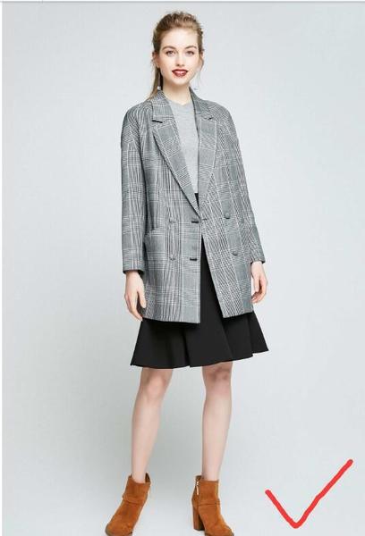 这种H型的外套,经典可以修饰身材,不显腰线,拉长身体比例,盖臀的外套,微露小裙摆,优雅知性,不失俏皮,同时也掩盖了大腿粗的缺憾。