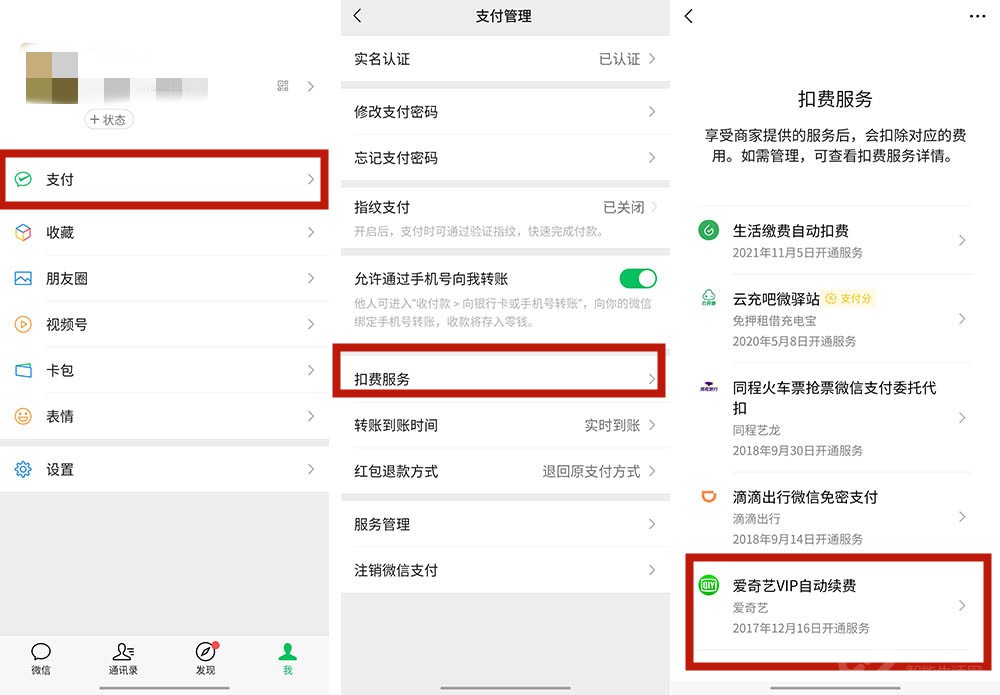 大部分APP需要通过支付宝、微信途径支付会员费,因此可以在支付宝或者微信中直接取消自动续费。微信关闭自动的续费方法为:点击我的—支付—右上角的“…”—扣费服务,在里面你不仅可以取消自动续费服务,而且还能取消掉各种APP的免密支付。