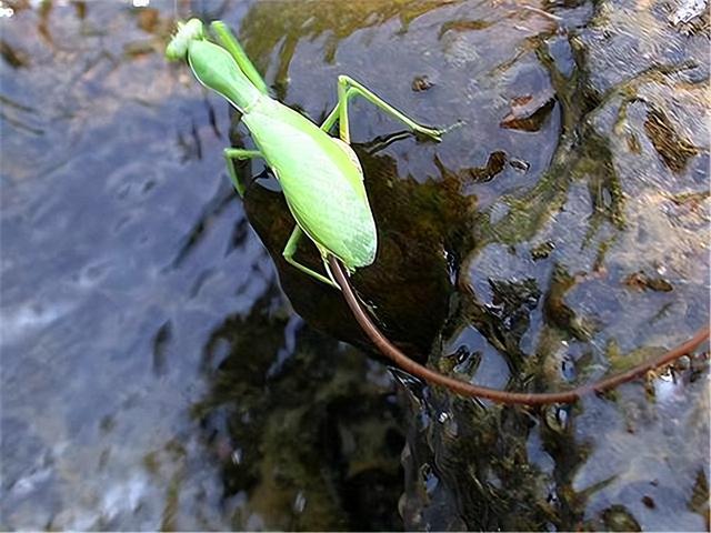 第二种对宿主的趋光性的控制——此外还有一种说法就是铁线虫对趋光性的控制。要知道在昆虫这个庞大的家族体系中,有很多昆虫都是螳螂山怕光的,而螳螂就是其中之一。因为铁线虫有趋光性的控制,所以会影响螳螂的行为。在水源处反光非常刺眼,在铁线虫操控下,为了躲避光源,螳螂会纵身而跃到水里。