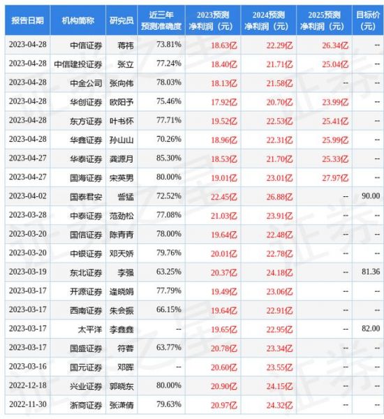最新盈利预测明细如下: