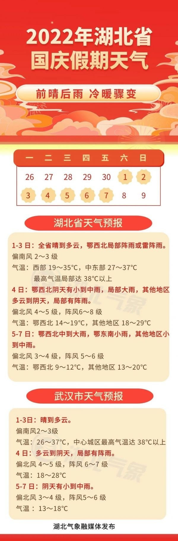 先晴后雨,冷暖骤变!武汉国庆天气预报来了