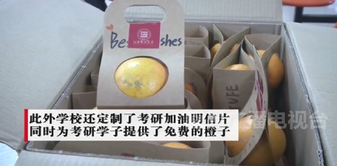此外,学校还为考研学子定制了考研加油明信片,并免费为他们提供橙子等水果,希望大家心想事“橙”,马到“橙”功。
