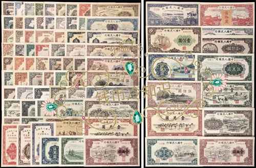 第一套人民币从1948年12月1日开始陆续发行,共12种面额62种版本,1元券2个版别,5元券4个版别,10元券4个版别,20元券7个版别,50元券7个版别,100元券10个版别,200元券5个版别,500元券6个版别,1000元券6个版别,5000元券5个版别,10000元券4个版别,50000元券2个版别。
