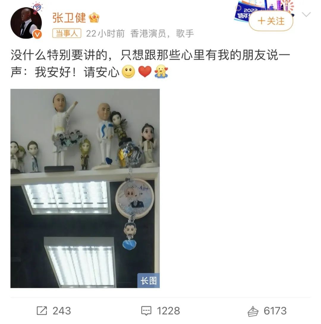 2月8日是中国香港男演员张卫健的60岁生日,他在社交平台晒出对镜自拍,并配文:“没什么特别要讲的,只想跟那些心里有我的朋友说一声:我安好!请安心”