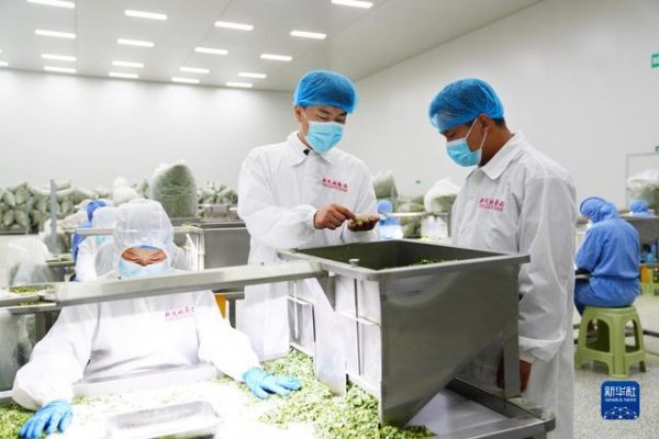 10月16日,在山东省兰陵县代村一家食品加工企业,代村党委成员刘聪聪(中)在检查产品质量。新华社记者 郭绪雷 摄