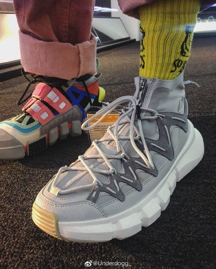 首先是悟道生活款,ESSENCE 2.3 DISCOVERY,这款鞋设计师是李宁的underdog,也叫狗哥,他主要设计悟道生活款系列,在大街上看到的好多鞋,都是他设计的,叫做爆款设计师不为过。这双悟道2.3同样拥有爆款的潜质,首先是看似复杂的鞋面,用了拉链、飞线、皮革等等材质表现,鞋子的层次感很好。