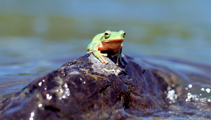 青蛙属于脊索动物门、两栖纲、无尾目、蛙科的两栖类动物,成体无尾,卵产于水中,体外受精,孵化成蝌蚪,用鳃呼吸,经过变异,成体主要用肺呼吸,兼用皮肤呼吸。上颌有齿,一般有犁骨齿。肩带固胸型,椎体参差型,荐椎横突柱状,指趾末端二骨节间没有间介软骨。鼓膜明显隐于皮下,皮肤光滑或有疣粒。舌一般长椭圆形,后端大多具缺刻。