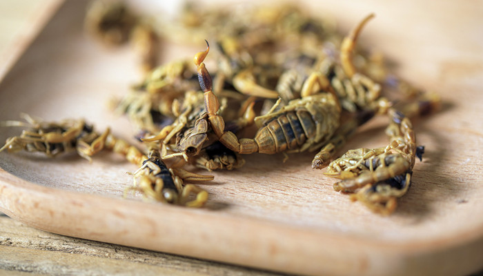 蝎子为肉食性动物,主要吃无脊椎动物,如蜘蛛、蟋蟀、小蜈蚣、多种昆虫的幼虫甚至是小型壁虎,极个别种类会少量摄取植物性饲料(如会全蝎)。蝎子又别名八爪虫,且任何蝎子都有毒,但毒性大小不同。