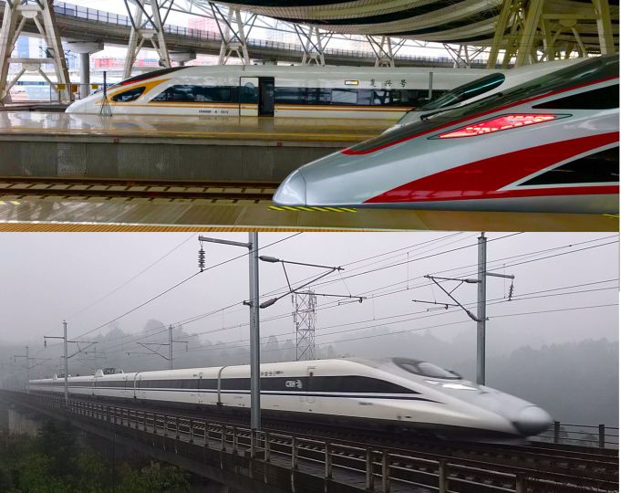 CRH380A是CRH2C基础上改进的,最后一辆CRH2C挂上了“老鼠头”作为CRH380A试验车。CRH380B与CRH3C相似度90%以上,很多人还不好区分两车外形。