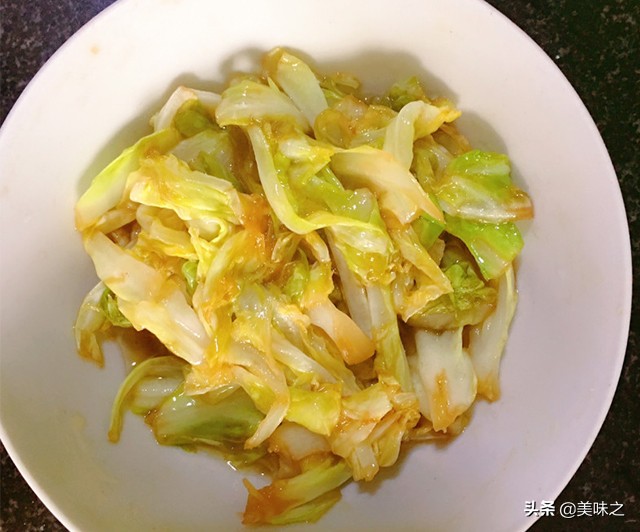 7、圆白菜微打卷即可加入水淀粉勾芡出锅。