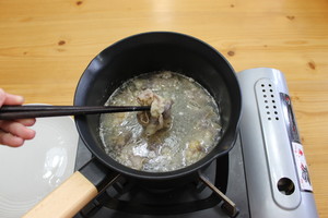 5、加入肥牛片,和少量水煮开