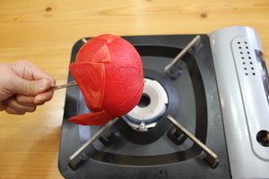 1、番茄划十字刀,在火上烤一下出去番茄皮