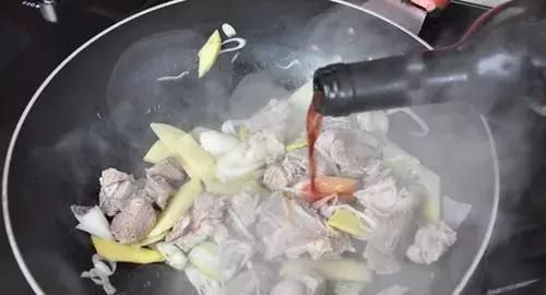 炒锅中加入少许油烧到3成热,放入羊肉、葱姜用中火煸炒至水分收干。